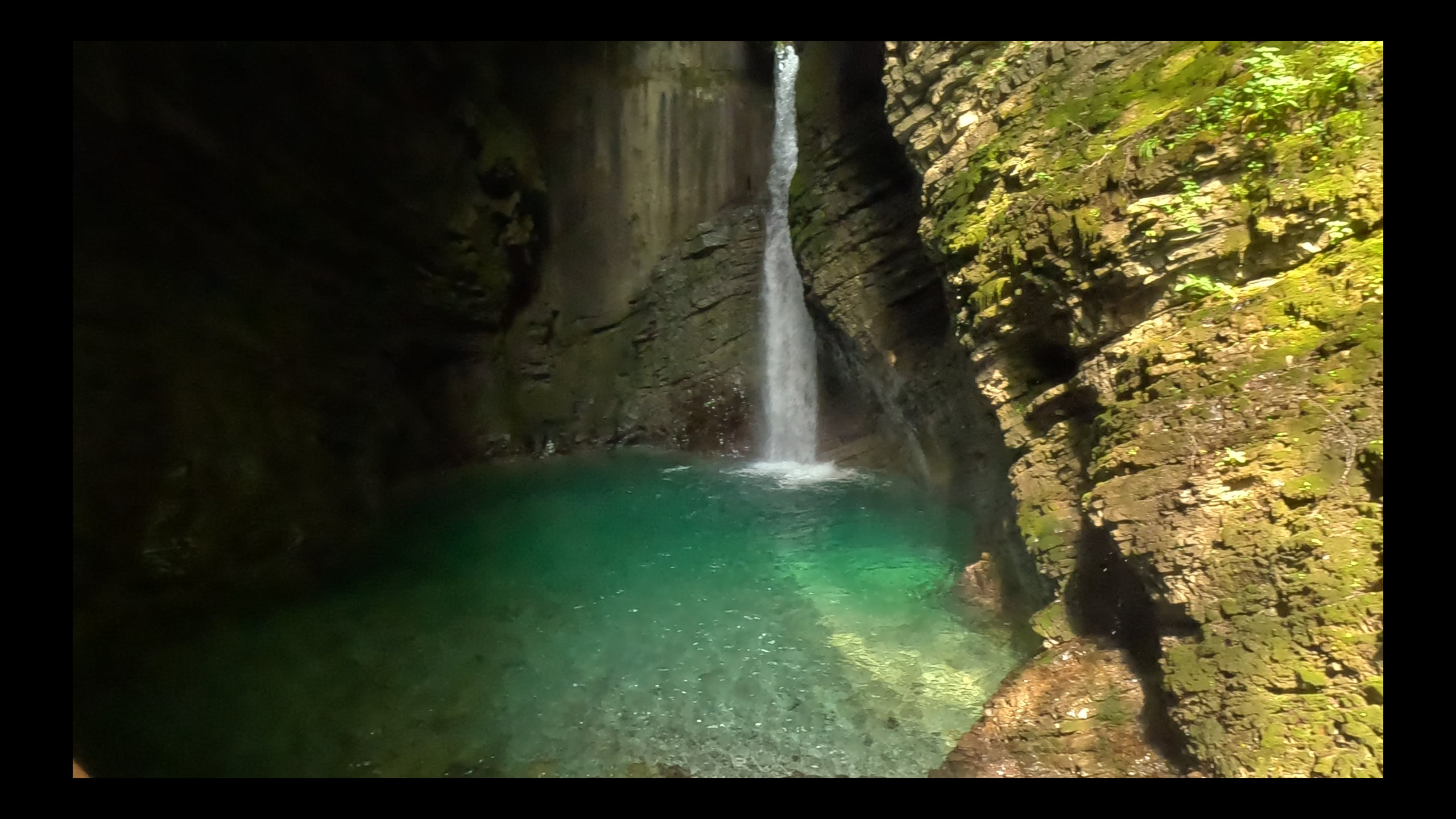 Op 6 juni liep ik door de kloof van de Kozjak richting de Veliki Kozjak waterval. Het water stortte van ongeveer 15 meter in een helder, turquoise poeltje, terwijl het zonlicht het geheel liet glinsteren. Tijdens de wandeling glinsterde het turquoise water van de Soca voortdurend, wat het extra bijzonder maakte.