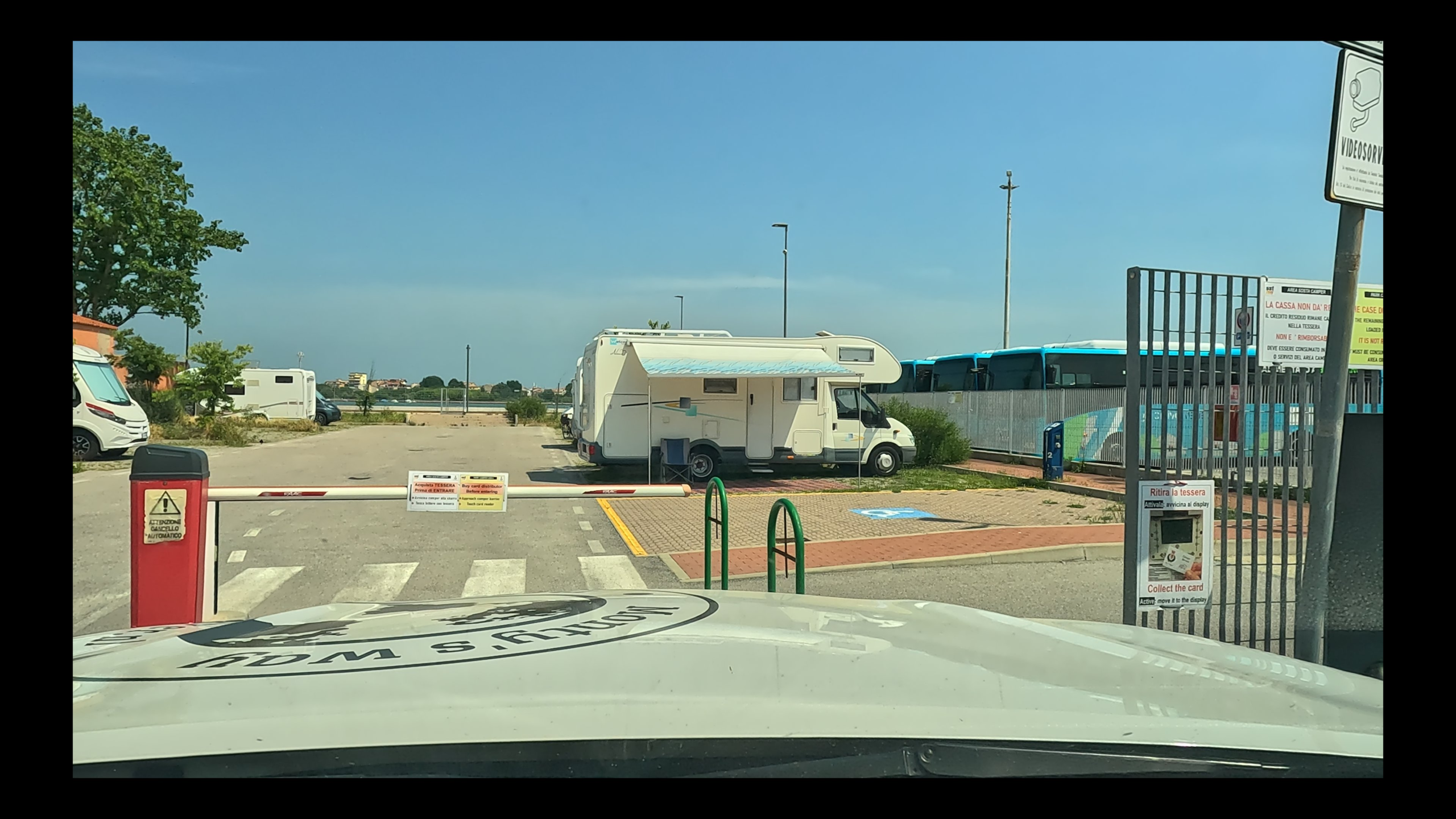 In Peschiera moest ik flink zoeken en een paar keer omdraaien, want de route was soms onduidelijk. Uiteindelijk vond ik de P4N plek. Voor de toegangsboom stond een bord “complet”. Omdat ik anders een heel stuk achteruit had moeten rijden, drukte ik op de hulpknop om te vragen of ik op het terrein mocht draaien.
