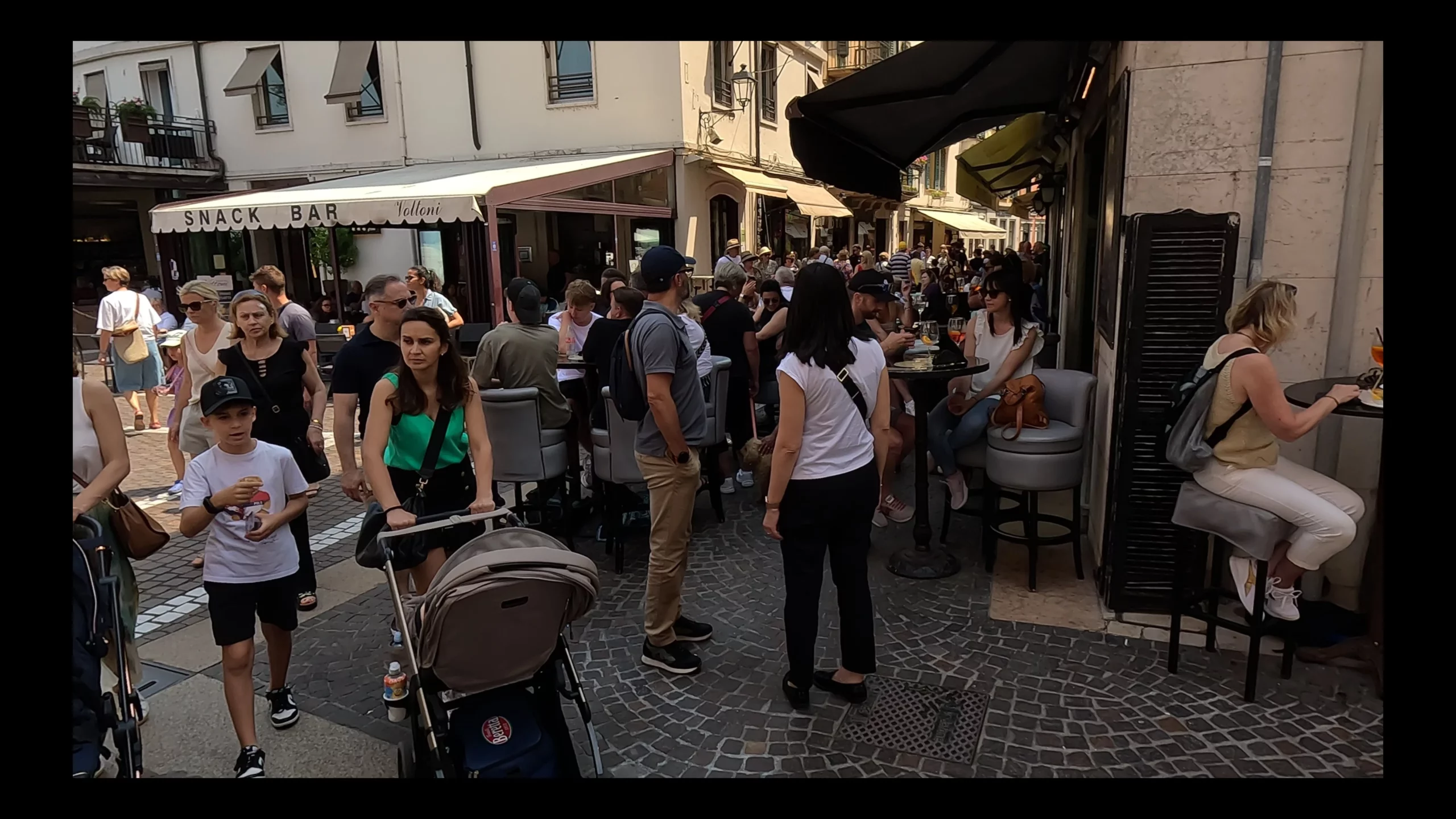 Tegen lunchtijd was de laptop leeg, dus toch maar een verlengkabel meenemen om buiten met stroom te kunnen werken. Na de lunch liep ik Peschiera in – langs de Marina, wat kleine straatjes in en de kerk bezichtigd. Toen vond ik het wel genoeg met de hitte en liep op het gemakje terug naar de P4N-plek om in de schaduw te lezen en aan mijn vlog te werken.